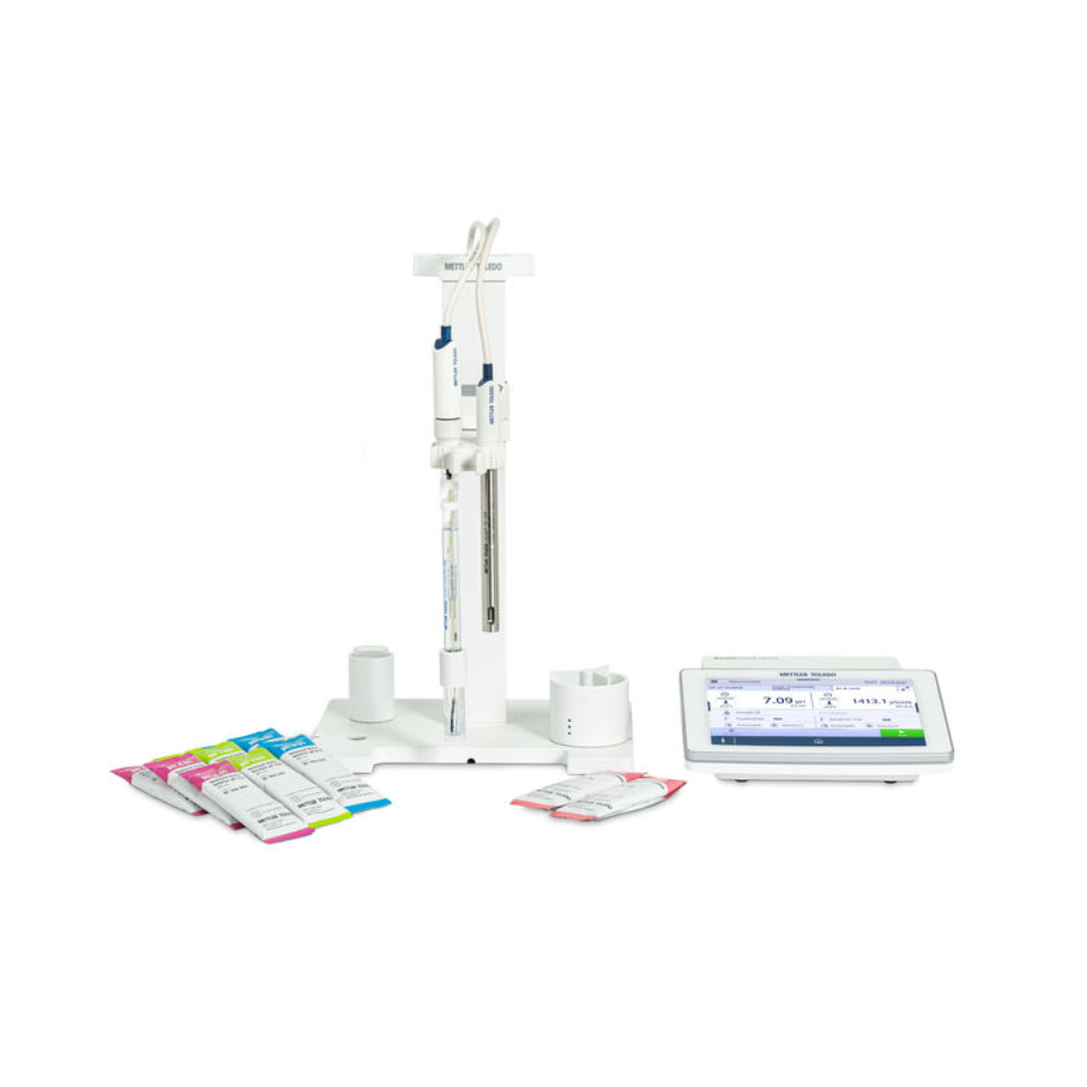 pH mjerač SD20 s InLab Pure-Pro ISM pH/temperaturnim senzorom za mjerenje pH vrijednosti u čistoj vodi s automatskim prepoznavanjem senzora. Komplet sadrži učinkoviti držač elektrode i vrećice pH pufera za početnu kalibraciju.